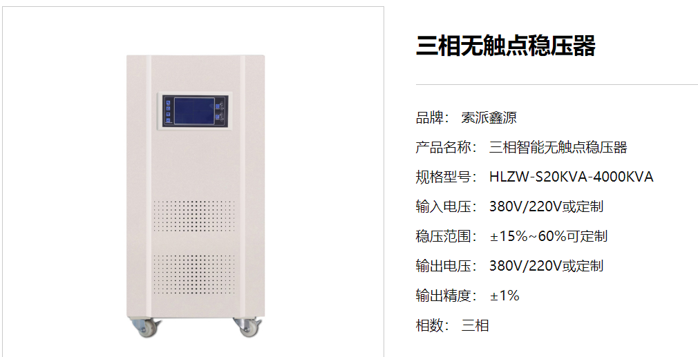 本系列智能型无触点补偿式交流稳压器以下简称无触点稳压器.是在我司多年生产补偿式电力稳压设备的基础上,经过多年努力成功研制的新一代快速稳压设备。
