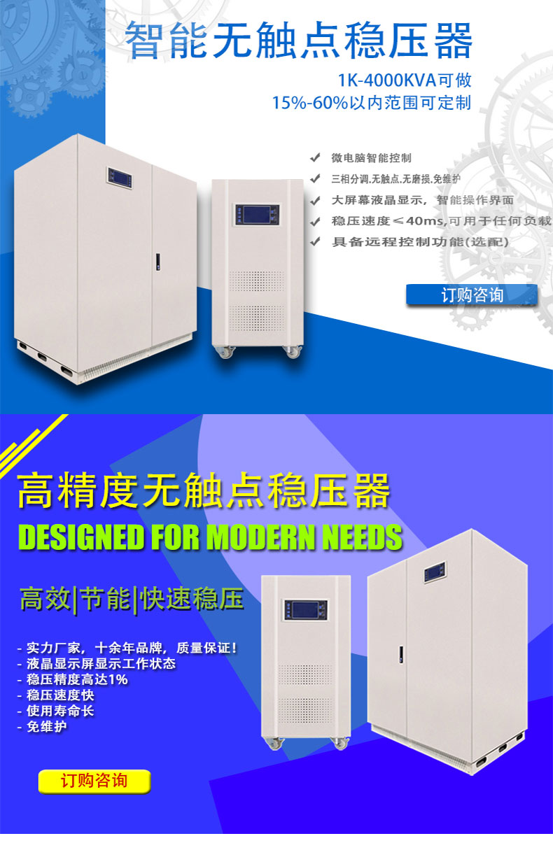 适用于国防、机械加工设备、交通、通讯、科研、工业、交通、铁路、大型机电设备、金属加工设备、数控机床、印刷机、激光切割机、生产流水线、建筑工程设备、电梯、医疗器械、刺绣轻纺设备、空调、广播电视及家用电器、照明、新能源等需要稳压的所有用电场合。为高端电源系统及关键设备的电源系统 提供高质量、高可靠性的电源保护方案。