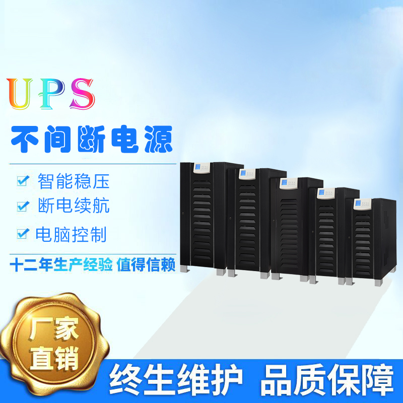 我司专业生产工频UPS电源,高频UPS电源,电力UPS电源,后备式UPS电源,机架式UPS电源,模块UPS电源,蓄电池,电池柜一整套解决方案。